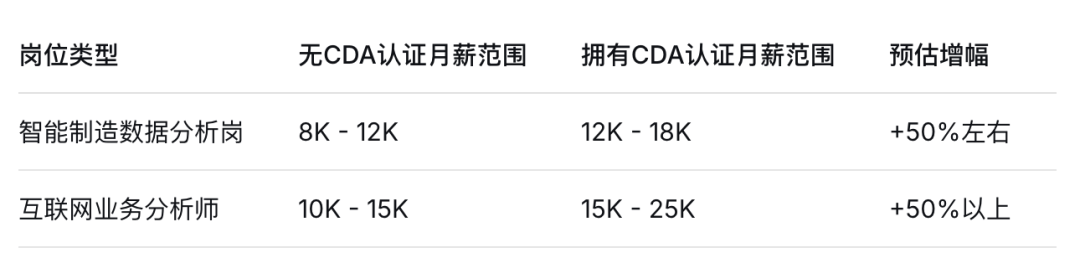 承认度很是高。很多企业聘请数据阐发、数字化运营等岗亭时,会说明“CDA持证人优先”。正在银行、金融机构的手艺岗亭,常要求至多具备CDA二级认证。