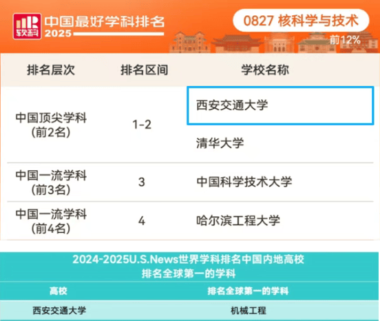 此中,电气工程专业更是实现了持续四轮评估连任A+的“大满贯”,这意味着正在中国电力工业从跟从到并跑甚至领跑的逾越过程中,西安交大的电气学科一直坐正在海潮之巅。而按照最新的软科2025中国最勤学科排名,它的动力工程及工程热物理、电气工程、核科学取手艺三大专业,间接登顶全国第一。更令人注目的是,正在2024-2025 U。S。News世界学科排名中,西安交大机械工程学科位列全球第一。