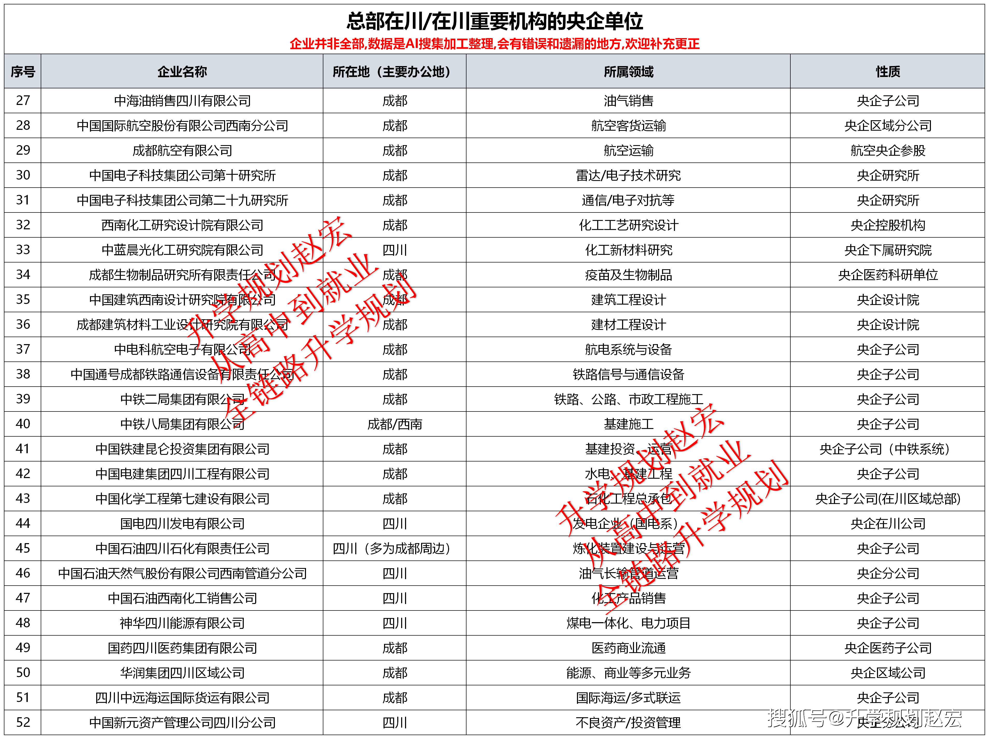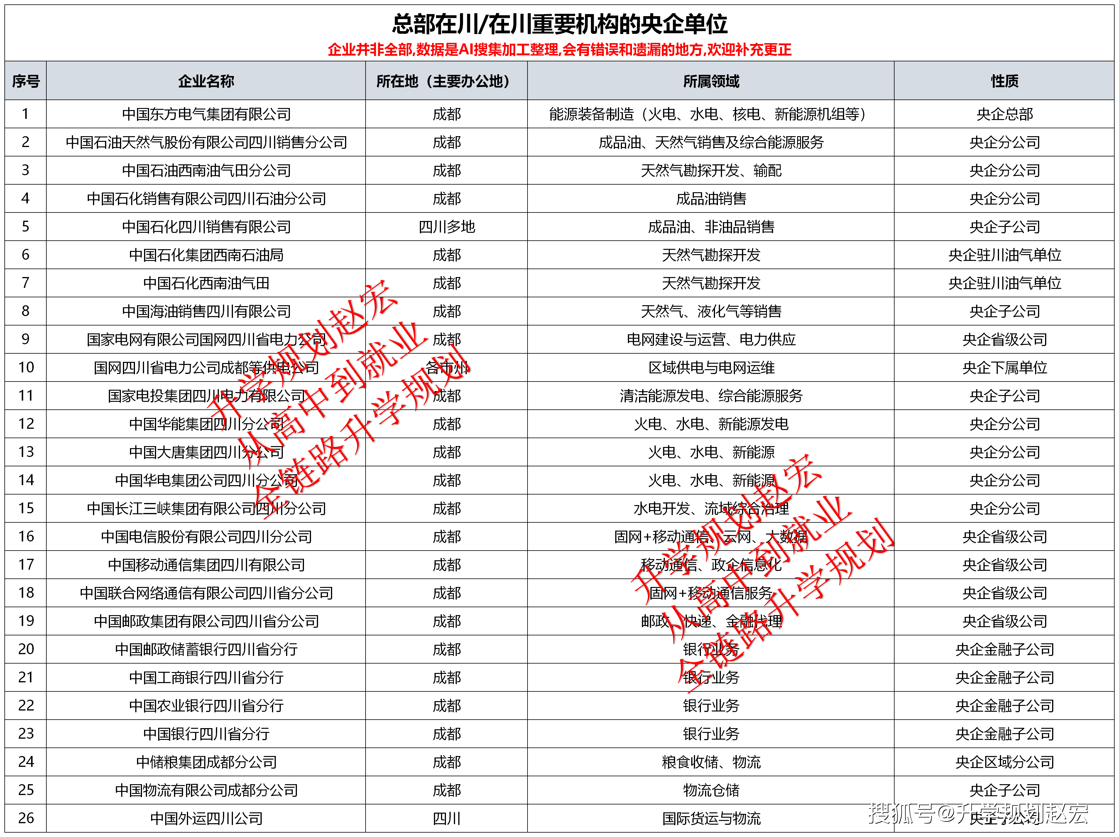 电力/能源标的目的对口企业有国网四川电力、四川能投、东方电气、西南油气田、中石油四川发卖、中石化西南油气分公司、水电五局/七局等。保举专业有电气工程及其从动化、新能源科学取工程、能源取动力工程、油气储运工程、勘查手艺取工程、地质工程等。